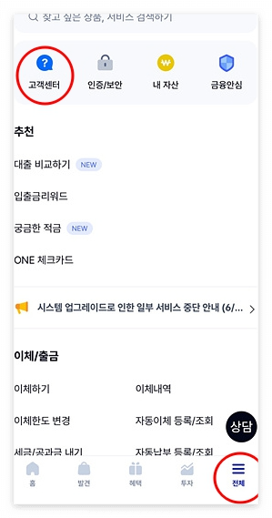 - 하단 메뉴에서 ‘전체’ 탭 선택