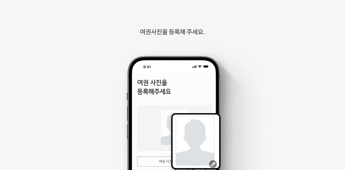 5. 6개월 이내 촬영한 여권 사진 업로드 - JPG, JPEG, PNG / 500KB 이하 413x531 pixel 권장