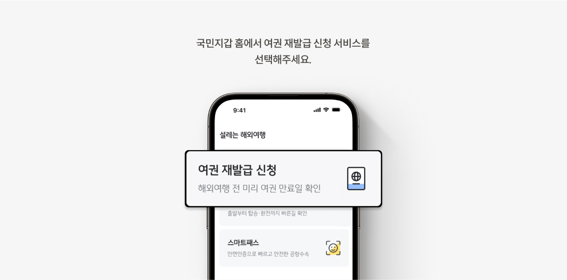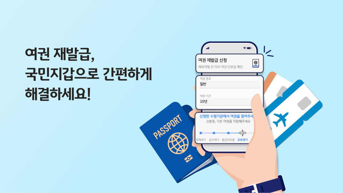 복잡하고 번거롭던 여권 재발급, 이제는 **KB스타뱅킹 앱으로 간편하게 신청**할 수 있습니다. 계좌가 없어도 가능하며, 집에서 사진 업로드 후 수령지 지정만 하면 끝! 시간 아끼고 줄 서지 않는 스마트한 여권 신청, 지금 바로 앱에서 확인해보세요.