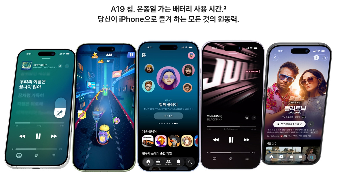 - 프로세서: Apple A19 (프로 모델은 A19 Pro), 향상된 온디바이스 AI 성능