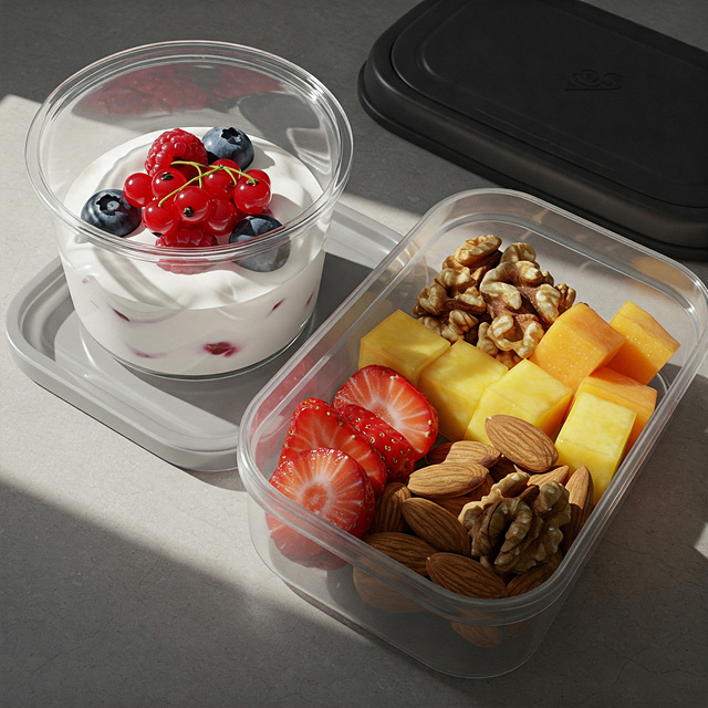 - 도시락 용기에 플레인 요거트를 담습니다.